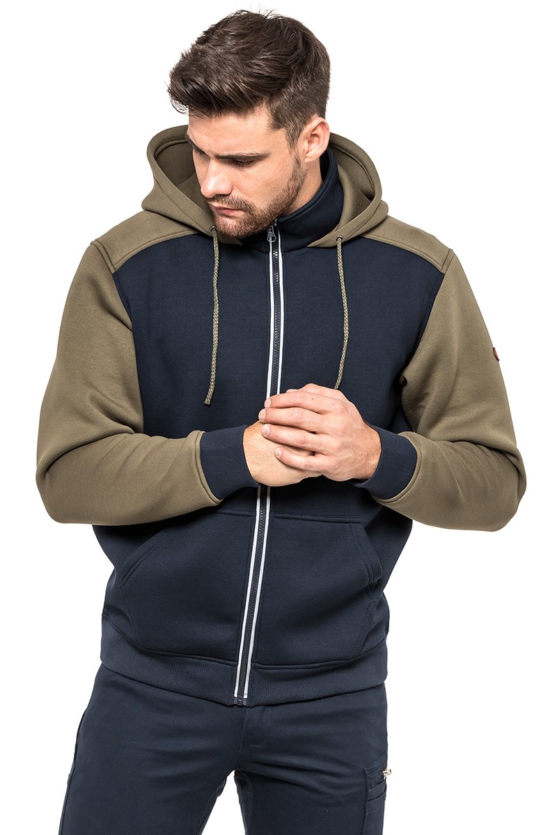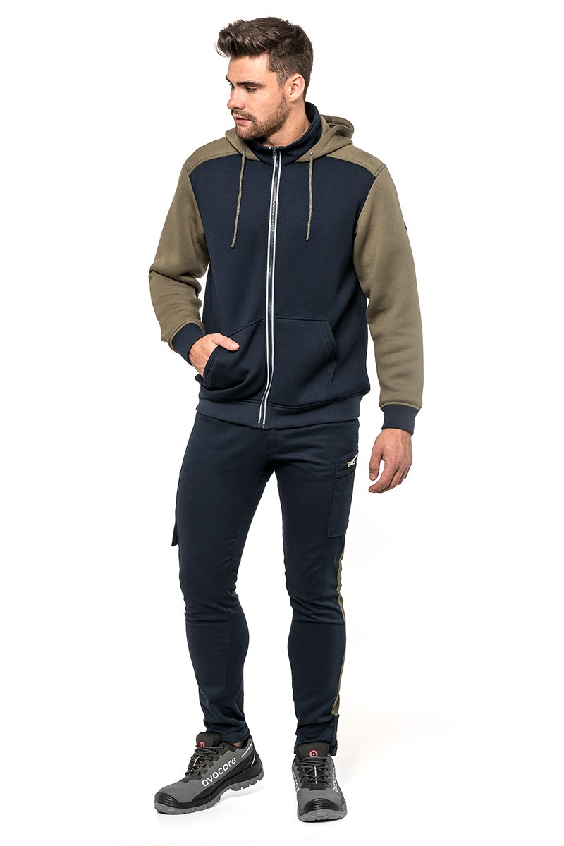 Bluza robocza z kapturem marki Tricorp ma kieszenie zapinane na suwak, kieszeń na rękawie oraz czesaną stronę wewnętrzną, która zapewnia komfort i wygodę noszenia. Bluza jest również wyposażona w regulowany kaptur, który zapewnia dodatkową ochronę przed wiatrem i chłodem.