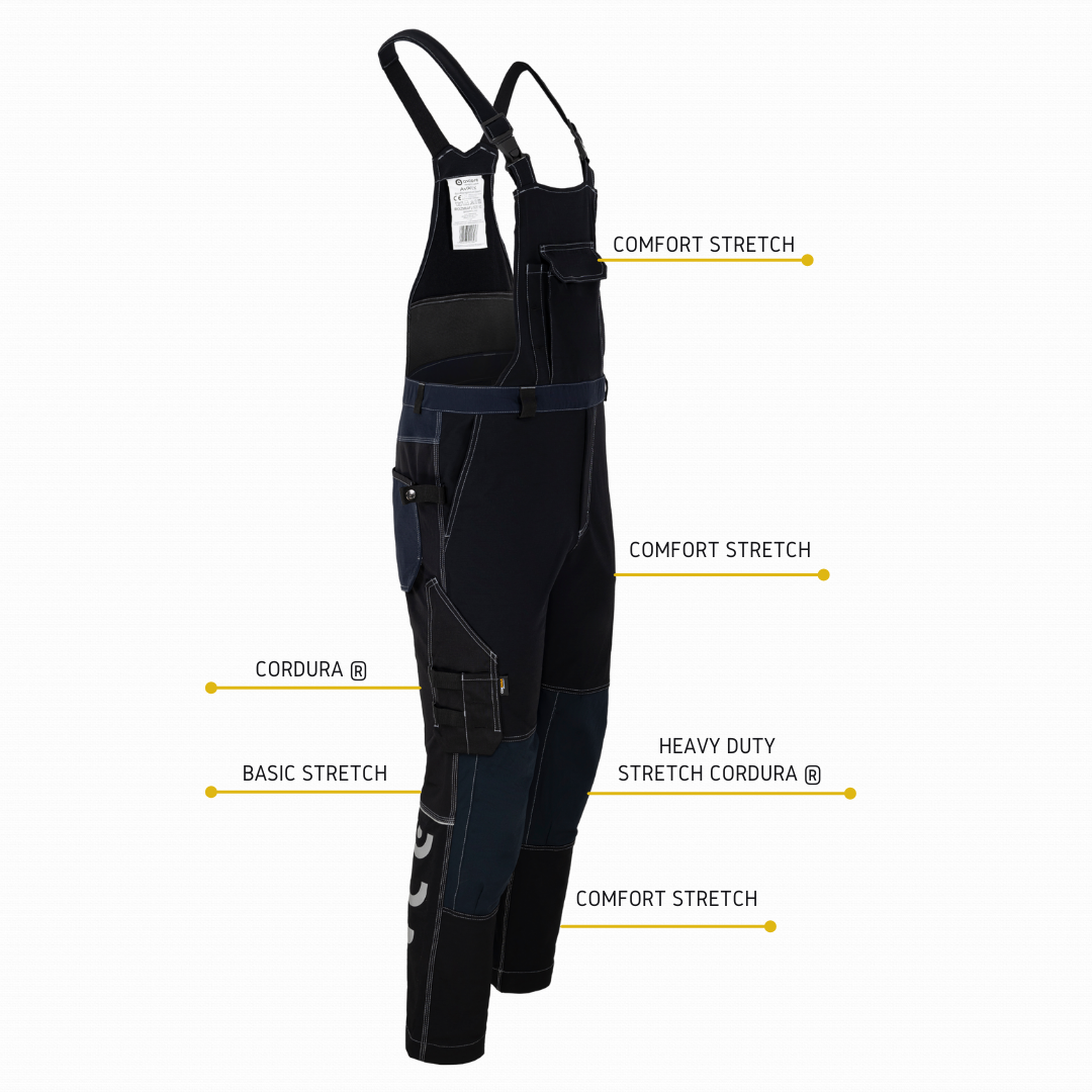 Spodnie robocze typu ogrodniczki łączące w sobie funkcjonalność klasycznych ogrodniczek z innowacyjną technologią materiałów stretch. Zaprojektowane dla najbardziej wymagających profesjonalistów, oferują ochronę przed brudem i urazami przy zachowaniu pełnej mobilności, znanej z odzieży sportowej i outdoorowej.