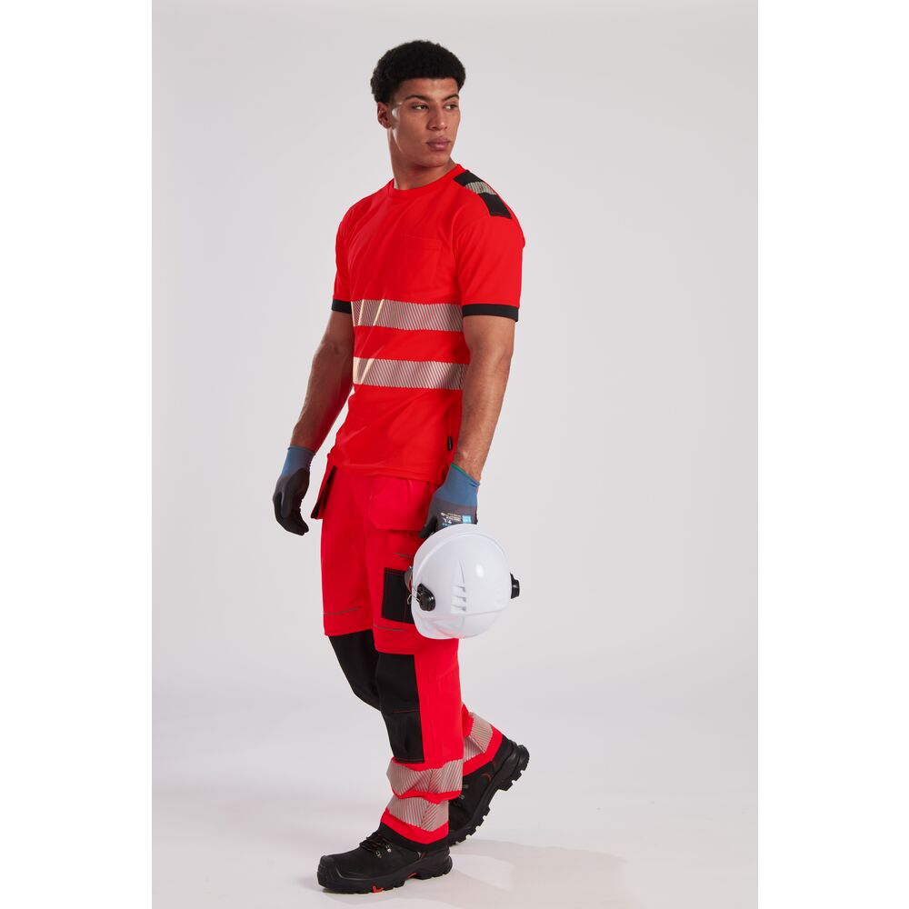 Stylowy T-shirt wykonany z wysokiej jakości materiału Cotton Comfort, który gwarantuje doskonałą oddychalność i komfort noszenia przez cały dzień. Wykorzystanie innowacyjnej taśmy odblaskowej premium HiVisTex Pro zapewnia maksymalną widoczność, nie ograniczając przy tym swobody ruchów. To lekka i nowoczesna koszulka, która stanowi idealny wybór dla osób szukających połączenia bezpieczeństwa z najwyższą wygodą.