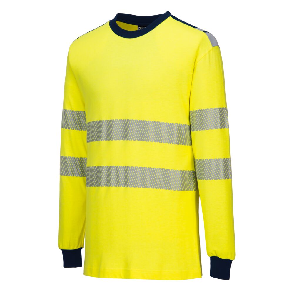 Koszulka z długim rękawem wykonana z lekkiego, naturalnie trudnopalnego materiału modakrylowego. Zapewnia właściwości antystatyczne oraz ochronę przed łukiem elektrycznym. Wyposażona w ostrzegawczą taśmę segmentową, która nie krępuje ruchów, oraz mankiety wykończone ściągaczem. Konstrukcja nie zawiera odsłoniętych elementów metalowych.